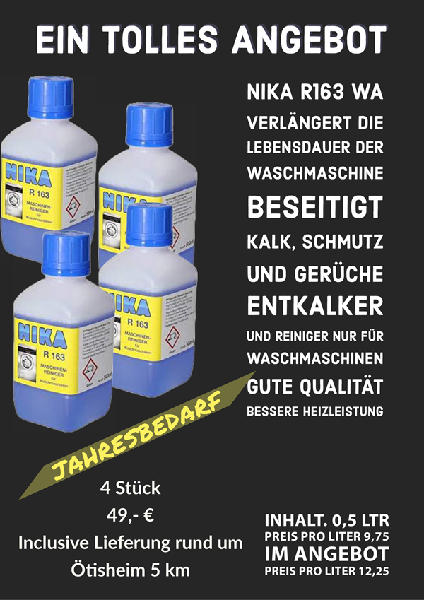 Hochwertiges Spezialmittel für die zuverlässige Reinigung des Waschsystems bei Waschautomaten.Seit über 30 Jahren verkaufen wir das Produkt Die Maschine ist nach dem Reinigen gleichzeitig entkalkt und eventueller Biofilm ist verschwunden,Ihre Waschmaschine dankt es ihnen und Sie freuen sich über ein langes Geräteleben.Das Produkt ist einzeln oder in beliebiger Stückzahl erhältlich.Nutzen Sie unsere speziellen Angebote !