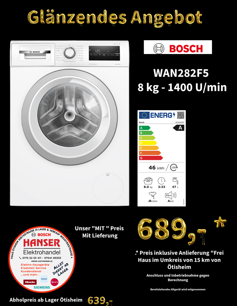 Bosch WAN282F5 mit 8 kg Volumen und 1400 Umdrehungen